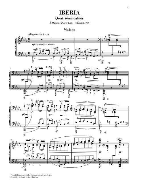 With the fourth and last book, our blue Urtext editions of the Iberia cycle are now complete. Albéniz had greatly struggled to complete the work because he was very ill. Yet he was able to hand over all of the twelve pieces he had promised to the pianist Joaquin with whom he was friends. Following the sensuous dance rhythms in Málaga and the cheerful and lively Eritana, he succeeded in creating a striking musical portrait of the famous Spanish wine-growing region with Jerez. Music has never achieved such a diverse and colorful form, was the judgement passed on Albéniz' late Romantic masterpiece by none other than Claude Debussy.