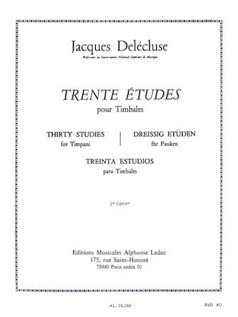 Jacques Delecluse - Trente Etudes Pour Timbales (2e Cahier) Publisher: Alphonse Leduc Category: Classical Series: Leduc Format: Softcover With few study books exisiting for the Timpani, Jacques Delécluse ensures that this gap is filled with his excellent Thirty Studies for Timpani. French percussionist and composer, Delécluse studied at the Paris Conservatoire in the mid-1900s, winning many prizes. The exercises in the second volume of Thirty Studies for Timpani are built on technical examples and problems. New rhythms are developed to ensure progression to a high level. For all aspiring Timpani players, Delécluse's Thirty Studies is essential, having been compiled by a master of the instrument himself. Inventory # : 48182741 UPC: 888680866464 ISBN: Width: 9" Length: 12" Height: 0.054" Product Weight: 0.2 lbs. Number of Pages: 20