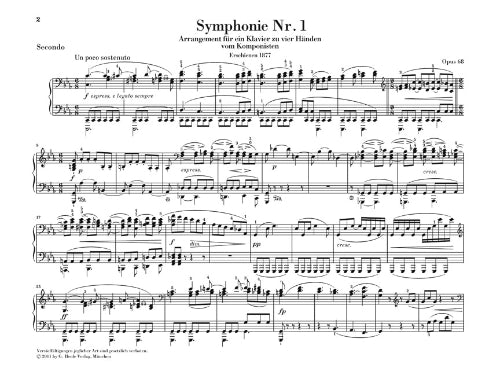 In the 19th century, arrangements for piano four-hands were usually versions which people played at home if the works could not be heard in concert. In cases such as these Brahms did not, however, just make functional versions but creatively transcribed his works for the piano. As the composer he allowed himself greater freedom than arrangers for publishers did. In this form his arrangements greatly contributed to the success of his works in musical life in the 19th century. It is on account of their creativity that Brahms' arrangements have attracted new interest in musical circles over the last few decades. Our Urtext edition of the Symphonies nos. 1 and 2 for piano four hands offers a scholarly musical text following the recently published volume in the Brahms Complete Edition.