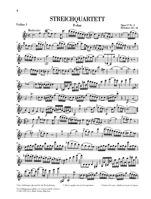 The autograph score of the Quartets op. 17 was in the possession of the imperial police chief Johann Nepomuk Neuwirth, whose widow gave it to the Wiener Gesellschaft der Musikfreunde in 1875. It is said that Haydn used to play the viola in quartet rehearsals at the Neuwirth's house. Whether the Quartets op. 17 were composed for these gatherings can no longer be ascertained. However, even today they still have a fixed place amongst the music of all chamber music friends - and in particular nos. 4, 5 and 6, which are very different to the divertimento style of the early quartets, are played again and again.