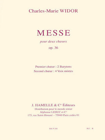 The Chorus Part for Charles-Marie Widor's Messe Pour Deux Choeurs Op.36. Choir 1: 2 Baritones, Choir 2: SATB Voices.