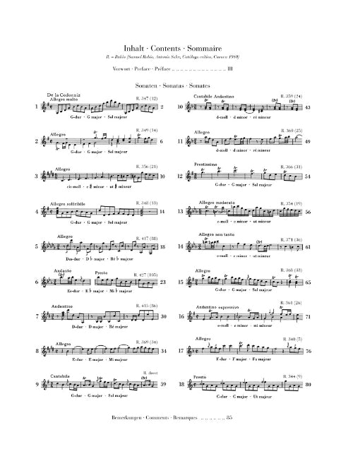 Antonio Soler composed more than 500 sacred choral musical pieces in his native Spain. Today, though, it is his 200-or-so keyboard sonatas that are arousing the curiosity of performers. Our anthology volume presents 18 of them from all periods of the composer's creative life. In 1761 Soler wrote a music-theory treatise in which he sketched out methods of quickly modulting to remote keys; these techniques are also found in his keyboard sonatas. In this Urtext volume the player will enjoy the subtlety and speed of modulation between keys, and a brilliant lightness occasionally darkened by moments of pathos.