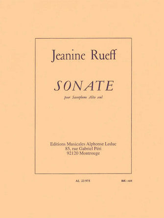 Composed by Jeanine Rueff, Sonata for Alto Saxophone solo is a piece for advanced players lasting 12 and a half minutes. Written in 9 pages, this piece, quite challenging (tempo, key ranges), would be perfect for musicians of advanced level and above, while requiring some serious work to obtain the correct result. Wonderfully composed, very technical yet very lyrical, this piece is really enjoyable and can be used for recital or contests. Jeanine Rueff composed numerous pieces for Saxophones that were often used in contests, as well as many pieces for Saxhorn, Clarinet, Horn and Cornet.
