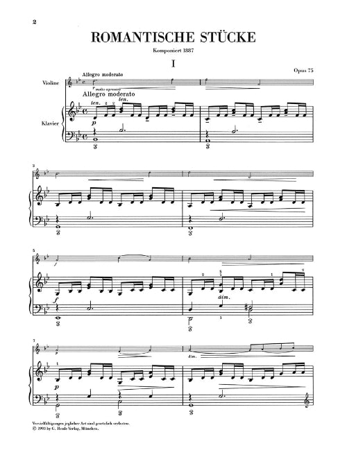 Antonín Dvorák Romantic Pieces for Violin and Piano Op. 75