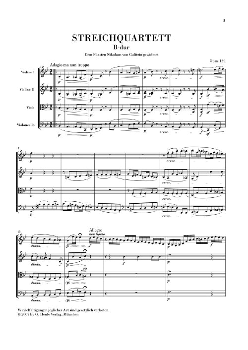 String Quartet In B Flat Major Op 130 And Great Fugue Op 133 Study Score