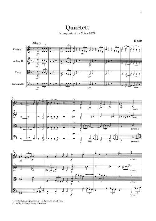 String Quartet D Minor D 810 The Death And The Maiden Henle Study Scores
