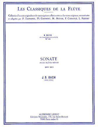 Sonata Bwv1013 In A Minor Classiques No 18 For Flute