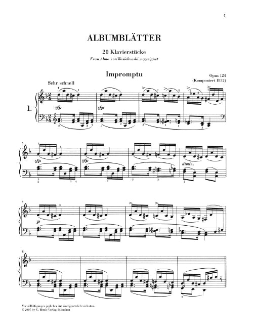 Robert Schumann Albumblatter Album Leaves Op 124 Piano Solo