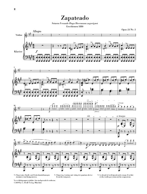 Pablo De Sarasate Zapateado Spanish Dance No 6 Violin And Piano