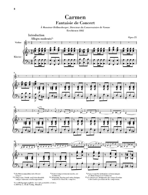 Pablo De Sarasate Carmen Fantasy Op 25 Violin And Piano