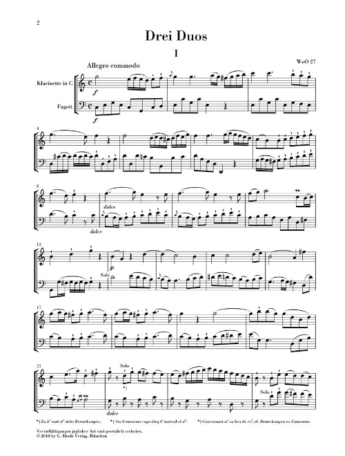 Ludwig Van Beethoven 3 Duos For Clarinet And Bassoon Woo 27 Score And Parts