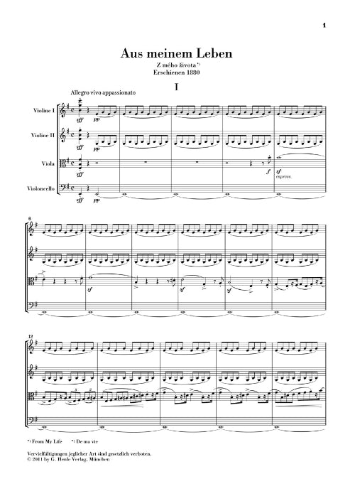 From My Life String Quartet No 1 In E Minor Study Score