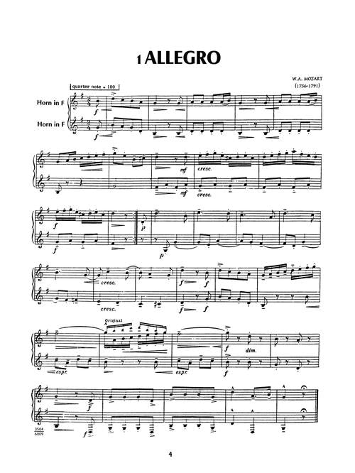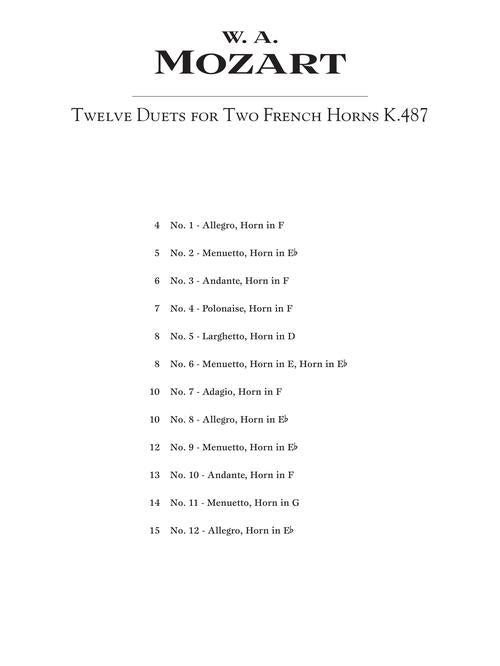 Mozart Twelve Duets For Two French Horns Music Minus One French Horn