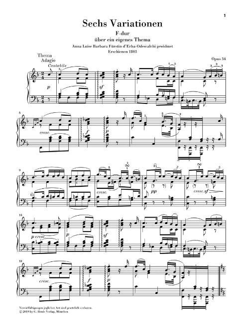 Ludwig Van Beethoven 6 Variations In F Major Op 34 Piano Solo