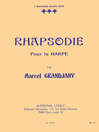 Composer: Marcel Grandjany Rhapsody for Harp Publisher: Alphonse Leduc Category: Classical Series: Leduc Format: Softcover French born harpist and composer, Marcel Grandjany (1891-1975) studied at the Paris Conservatoire before spending much of his working life in...Regular price $27.99 -