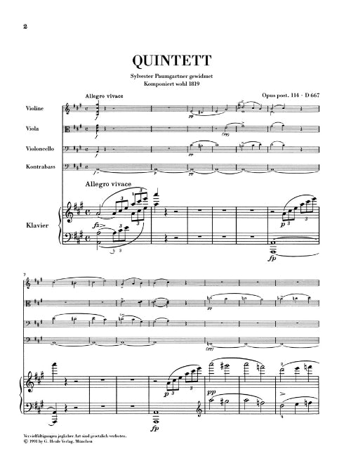 Franz Schubert Quintet A Major Op Posth 114 D 667 The Trout Piano Quintet