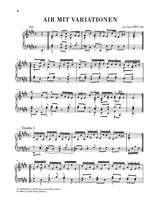 George Friedrich Handel Air With Variations The Harmonious Blacksmith Piano So