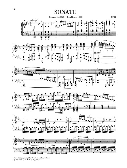 Franz Schubert Piano Sonata C Minor D 958 Piano Solo