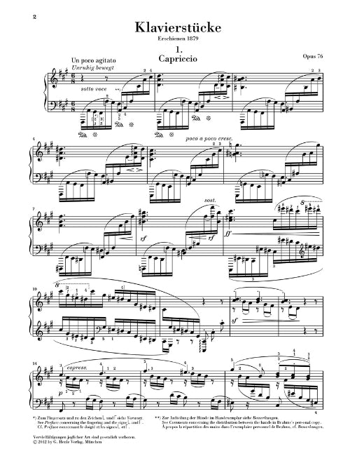 Johannes Brahms Piano Pieces Op 76 Nos 1 8 Capriccios C C F B Intermezzi