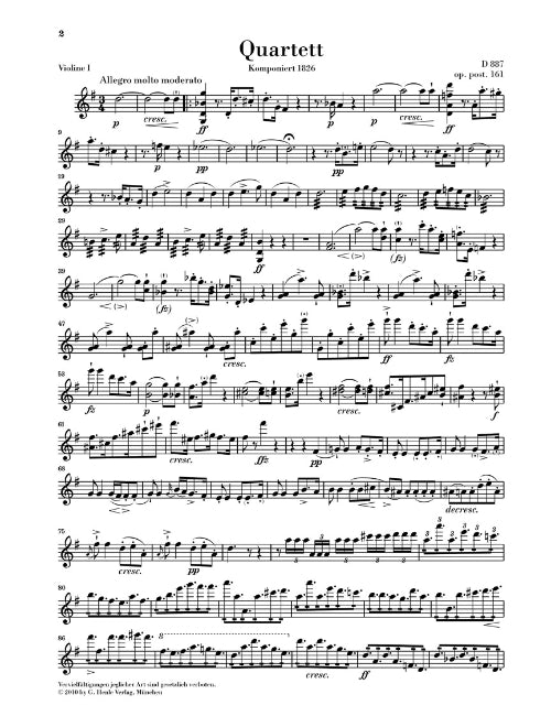 Franz Schubert String Quartet In G Major Op Post 161 D 887 Set Of Parts