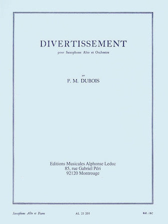 Divertissement Pour Saxophone Alto Et Orchestre Version Saxophone Et Piano Publisher: Alphonse Leduc Category: Classical Series: Leduc Format: CD French composer, Pierre Max Dubois (1930-1995) significantly contributed to the woodwind repertoire, particularly for Saxophone. Divertissement for...Regular price $39.99