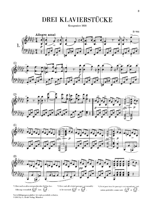 Franz Schubert 3 Piano Pieces Impromptus Op Post D 946 Piano Solo