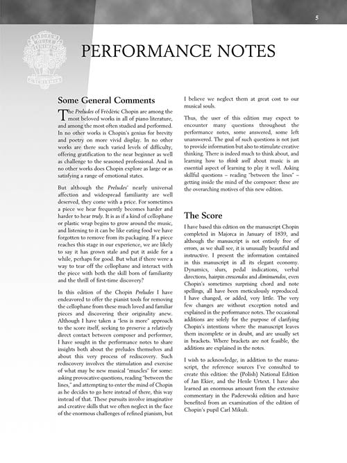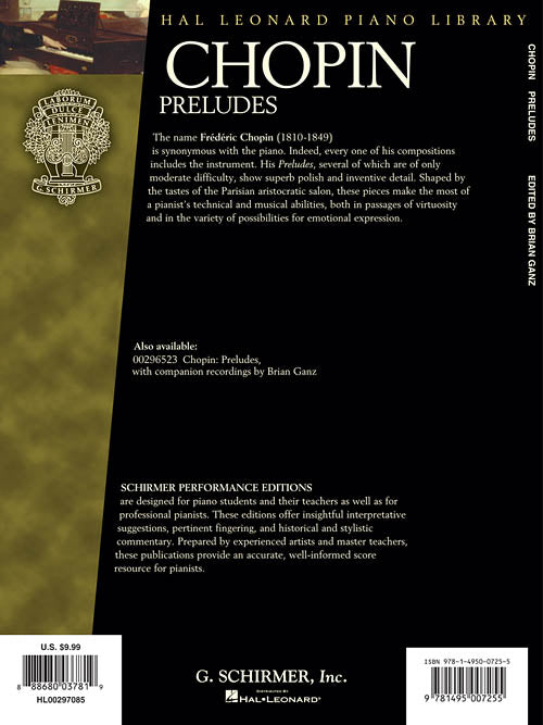 Chopin - Preludes Schirmer Performance Editions Book Only Publisher: G. Schirmer, Inc. Category: Classical Series: Schirmer Performance Editions Format: Softcover Pedagogical in nature, these editions offer insightful interpretive suggestions, pertinent fingering, and historical and stylistic commentary....Regular price $11.99 -