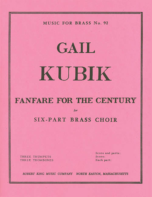 Composer: Gail Kubik Fanfare For The Century (sextet-brass) Publisher: Robert King Category: Classical Series: Robert King Format: Paperback for 3 trumpets and 3 trombones Inventory # : 48184995 UPC: 888680881467 ISBN: Width: 9" Length: 12" Height:...Regular price $28.99 -