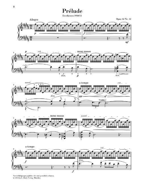 Composer: Sergei Rachmaninoff Prélude in G-sharp minor, Op. 32 No. 12 Piano Solo Publisher: Henle Urtext Edition Category: Keyboard & Piano/Vocal/Guitar Series: Henle Music Folios Format: Paperback Amongst the pieces in Rachmaninoff's 24 Préludes there are...Regular price $10.99 -