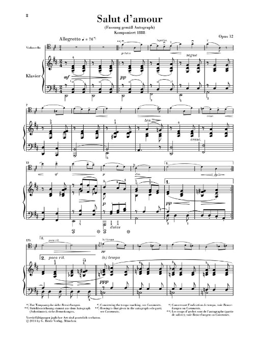 Edward Elgar Salut Damour Op 12 Violoncello And Piano With Marked And Unmarked