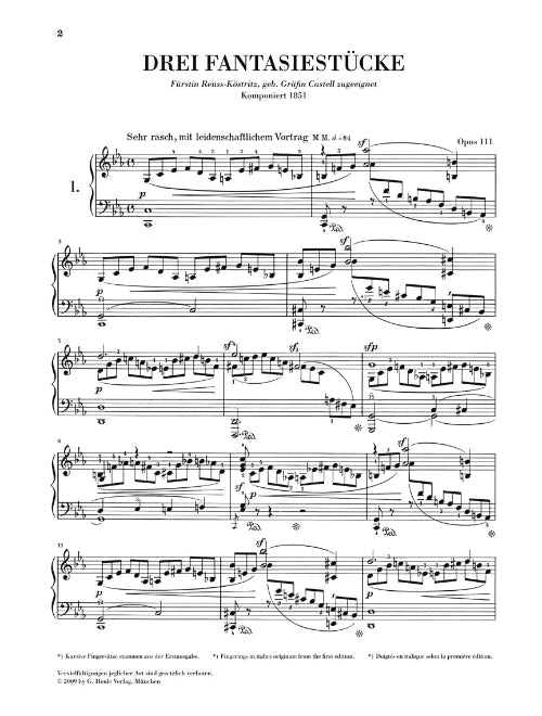 Robert Schumann 3 Fantasy Pieces Op 111 Piano Solo