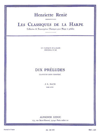 Composer: Johann Sebastian Bach Dix Preludes - Les Classiques de la Harpe No. 12 for Harp Publisher: Alphonse Leduc Category: Classical Series: Leduc Format: Softcover J.S. Bach (1685-1750) is one of the most famous composers ever...Regular price $28.99 -