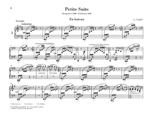 Composer: Claude Debussy Petite Suite 1 Piano, 4 Hands Publisher: Henle Urtext Edition Category: Keyboard & Piano/Vocal/Guitar Series: Henle Music Folios Format: Softcover Debussy composed the suite with four movements in 1888, fresh after his return...Regular price $31.99 -