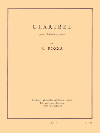 Composer: Eugène Bozza Claribel (clarinet And Piano) Publisher: Alphonse Leduc Category: Classical Series: Leduc Format: Softcover Claribel is a piece for Clarinet and Piano, composed by Eugène Bozza. Written for upper intermediate players as quite challenging,...Regular price $27.99 -