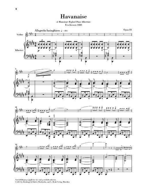 Composer: Camille Saint-Saëns Havanaise, Op. 83 Violin and Piano with marked and unmarked string parts Publisher: Henle Urtext Edition Category: Solo Instrumental Series: Henle Music Folios Format: Softcover Composed in 1887, Saint-Saëns' Havanaise was extremely well...Regular price $28.99 -