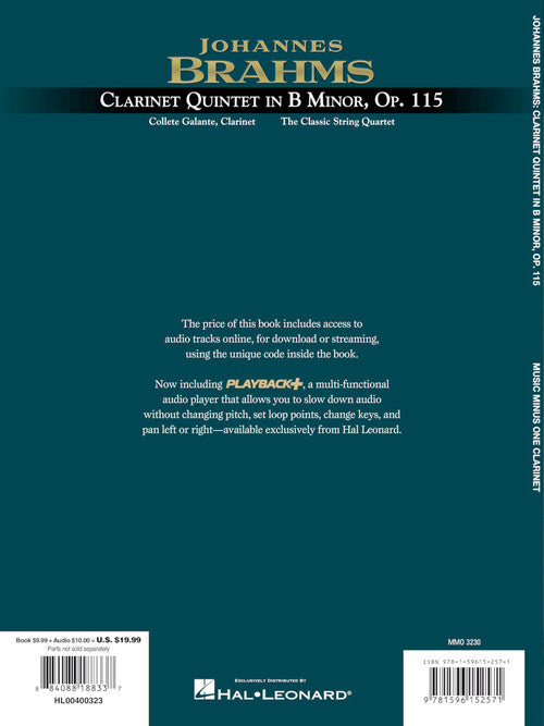 Composer: Johannes Brahms Brahms - Clarinet Quintet in B minor, Op. 115 Music Minus One Clarinet Publisher: Music Minus One Category: Classical Series: Music Minus One Format: Softcover Audio Online Brahms' magnificent B-minor Clarinet Quintet is...Regular price $27.99 -