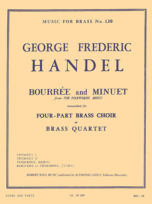 Composer: George Frideric Handel Bourree Et Menuet 'fireworks Music' (quartet-brass) Publisher: Robert King Category: Classical Series: Robert King Format: Paperback for 2 trumpets, trombone (or horn) and trombone (or tuba) Inventory # : 48185030 UPC: 888680881108...Regular price $22.99