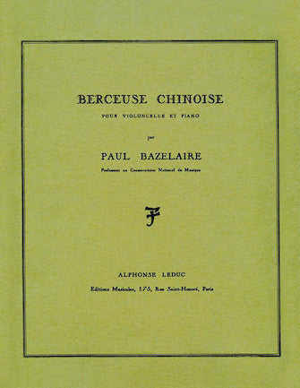 Composer: Paul Bazelaire Berceuse Chinoise Op. 115 for Cello and Piano Publisher: Alphonse Leduc Category: Classical Series: Leduc Format: Softcover for cello and piano Inventory # : 48180857 UPC: 888680851132 ISBN: Width: 10.5" Length: 13.5" Height:...Regular price $15.99 -