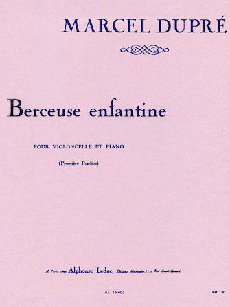 Composer: Marcel Dupré Berceuse Enfantine for Cello and Piano Publisher: Alphonse Leduc Category: Classical Series: Leduc Format: Softcover for cello and piano Inventory # : 48180156 UPC: 888680794491 ISBN: Width: 9" Length: 12" Height: 0.042" Product...Regular price $19.99 -
