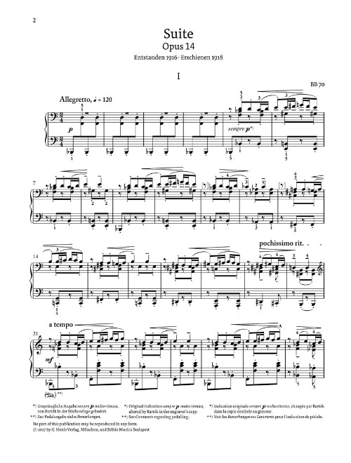 Composer: Béla Bartók Suite, Op. 14 Piano Solo Publisher: Henle Urtext Edition Category: Classical Series: Henle Music Folios Format: Softcover The four-movement Suite op. 14 was composed in 1916 and was one of Bartók's favourite piano...Regular price $22.99 -