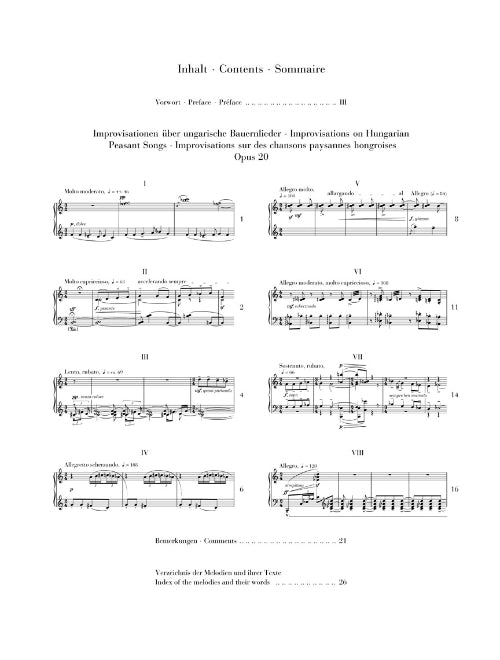 Bela Bartok Improvisations On Hungarian Peasant Songs Op 20 Piano