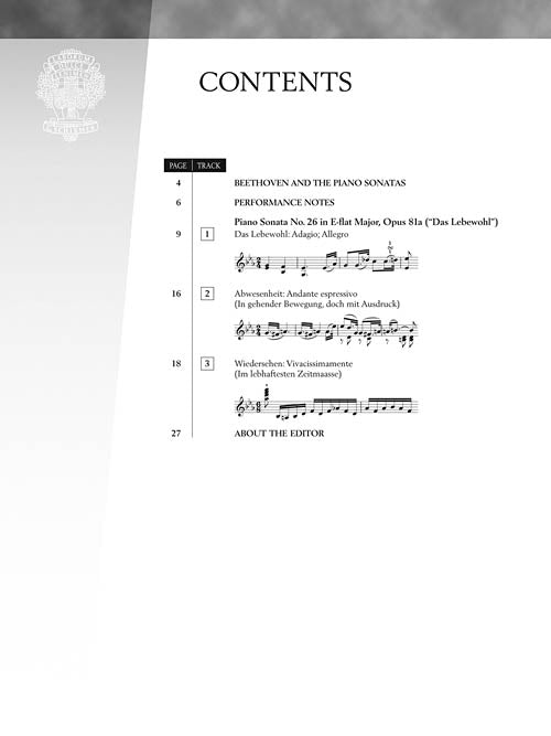 Beethoven: Sonata No. 26 in E-flat Major, Opus 81a (Das Lebewohl) Publisher: G. Schirmer, Inc. Category: Classical Series: Schirmer Performance Editions Format: Softcover with CD Beethoven: Sonata No. 26 in E-flat Major, Opus 81a (Das Lebewohl)...Regular price $10.99 -