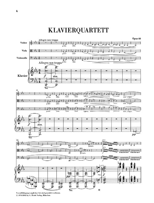 Composer: Johannes Brahms Piano Quartet C minor Op. 60 Publisher: Henle Urtext Edition Category: Band/Orchestra/Ensemble Series: Henle Music Folios Format: Softcover Brahms' Third Piano Quartet stands out for the extremely involved and complex history of its...Regular price $71.99 -