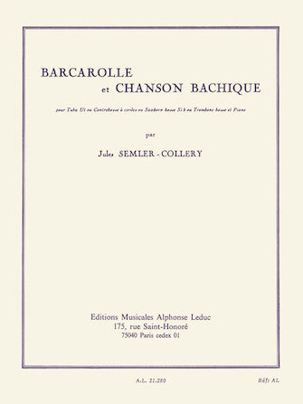 Composer: Jules Semler-Collery Barcarolle And Bacchanalian Song, For Tuba, Double Bass, Bass Sa Publisher: Alphonse Leduc Category: Classical Series: Leduc Format: Softcover French composer, conductor and teacher, Jules Semler-Collery (1902-1988) studied at the Paris Conservatoire where...Regular price $27.99 -