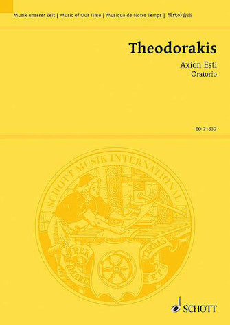Composer: Mikis Theodorakis Axion Esti Oratorio for Baritone, Mixed Choir & Orchestra Publisher: Hal Leonard Category: Classical Series: Study Score Format: Softcover For baritone, lyrical baritone, narrator, mixed choir and orchestra. Text in Greek. Inventory #...Regular price $111.99 -