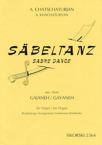 E: Freidemann Winklhofer Aram Khachaturian - Sabre Dance from the ballet Gayaneh Publisher: Sikorski Category: Classical Series: Misc Format: Paperback This transcription of the famous, brilliant Sabre Dance is now a virtuoso showpiece for solo organ....Regular price $14.99 -