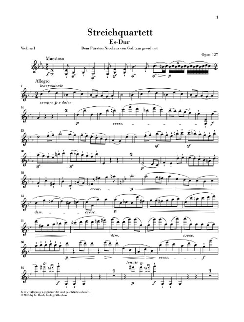 Composer: Ludwig van Beethoven String Quartet E Flat Major Op. 127 Publisher: Henle Urtext Edition Category: Band/Orchestra/Ensemble Series: Henle Music Folios Format: Softcover The E-flat Major String Quartet, Op. 127, is a key work not only...Regular price $43.99