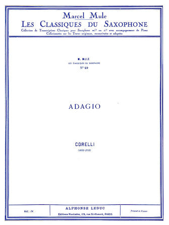 Composer: Arcangelo Corelli Adagio - Classiques No. 49 for Alto Saxophone and Piano Publisher: Alphonse Leduc Category: Classical Series: Leduc Format: Softcover for alto saxophone and piano Inventory # : 48180899 UPC: 888680857943 ISBN: Width: 9"...Regular price $11.99