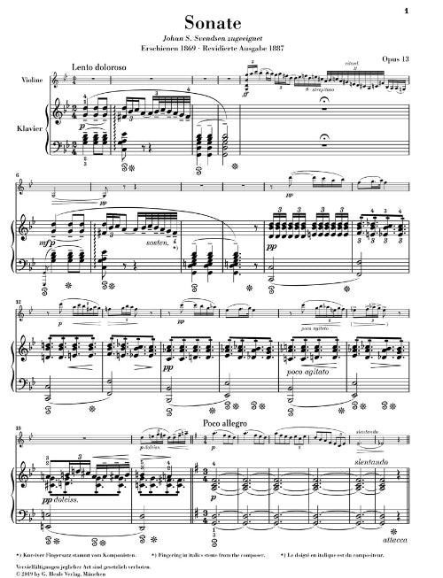 Edvard Greig Violin Sonata In G Major Op 13 Violin And Piano