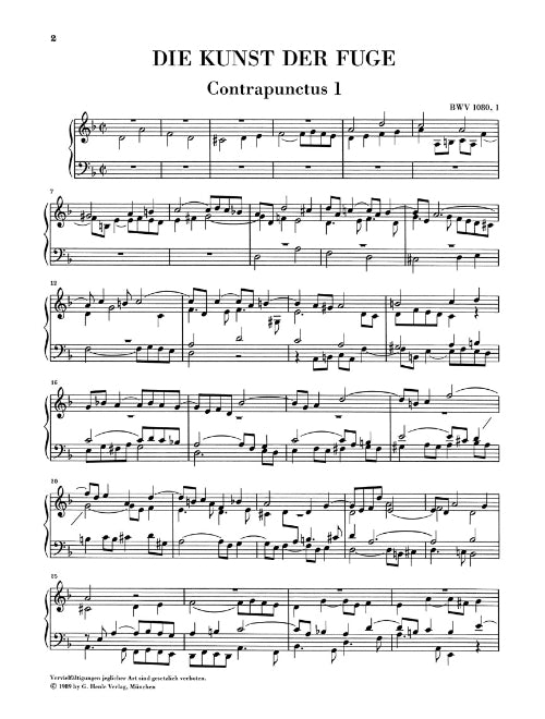 Johann Sebastian Bach Art Of The Fugue Bwv 1080 Piano Solo
